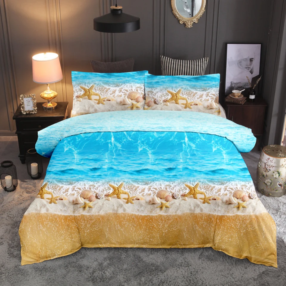Морской океан пляж Постельный набор 3d роскошный Печатный пододеяльник набор одиночный Королева двойной King Размер 200*200 современный 3 шт без простыни