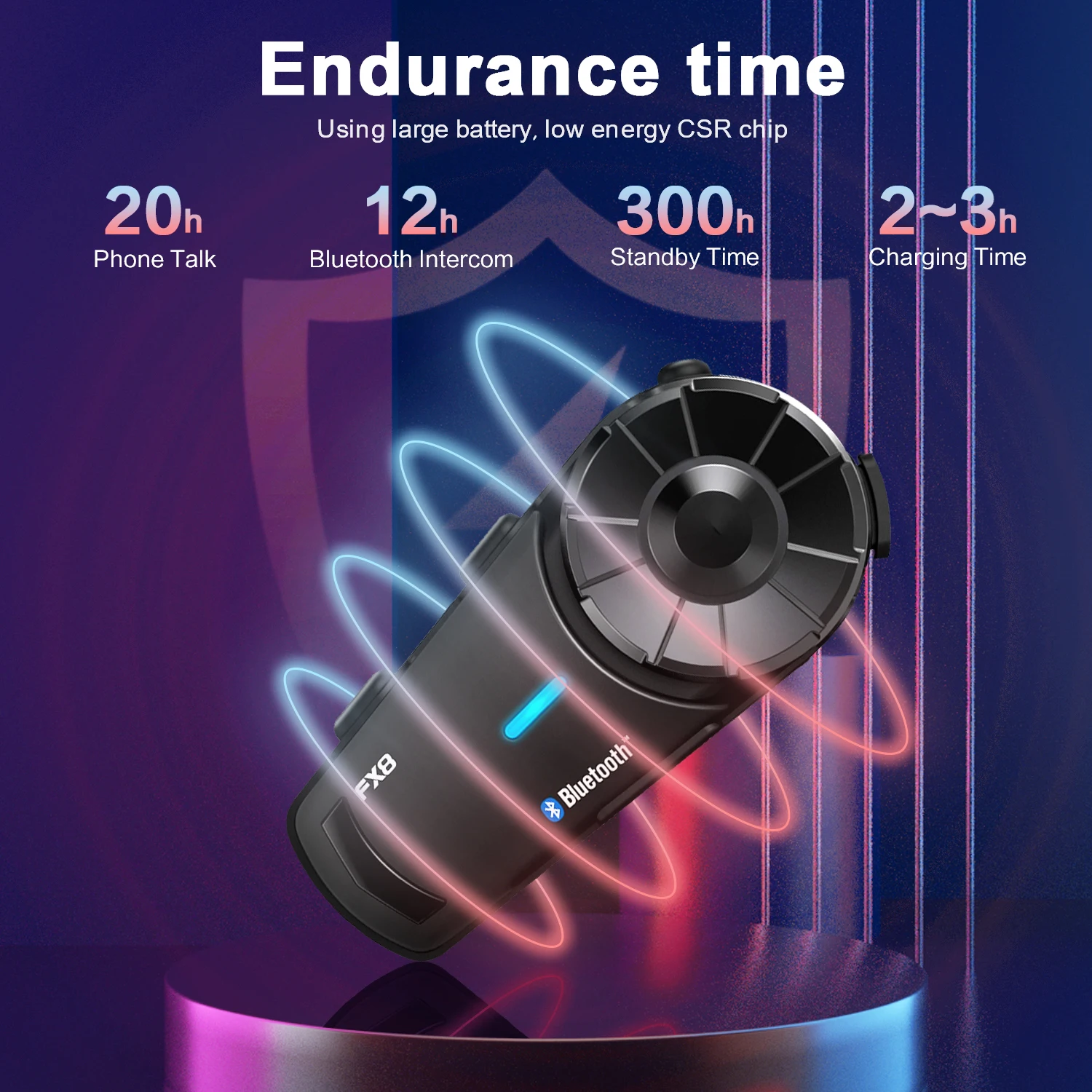 Мотоциклетный Интерком с перезаряжаемой батареей 900 мАч, в режиме ожидания до одной недели. Телефон до 12 часов Интерком до 10 часов. И мы предлагаем 12-месячную гарантию, так же, как легко добраться до послепродажного обслуживания, с помощью которого можно купить устройства без лишних забот.