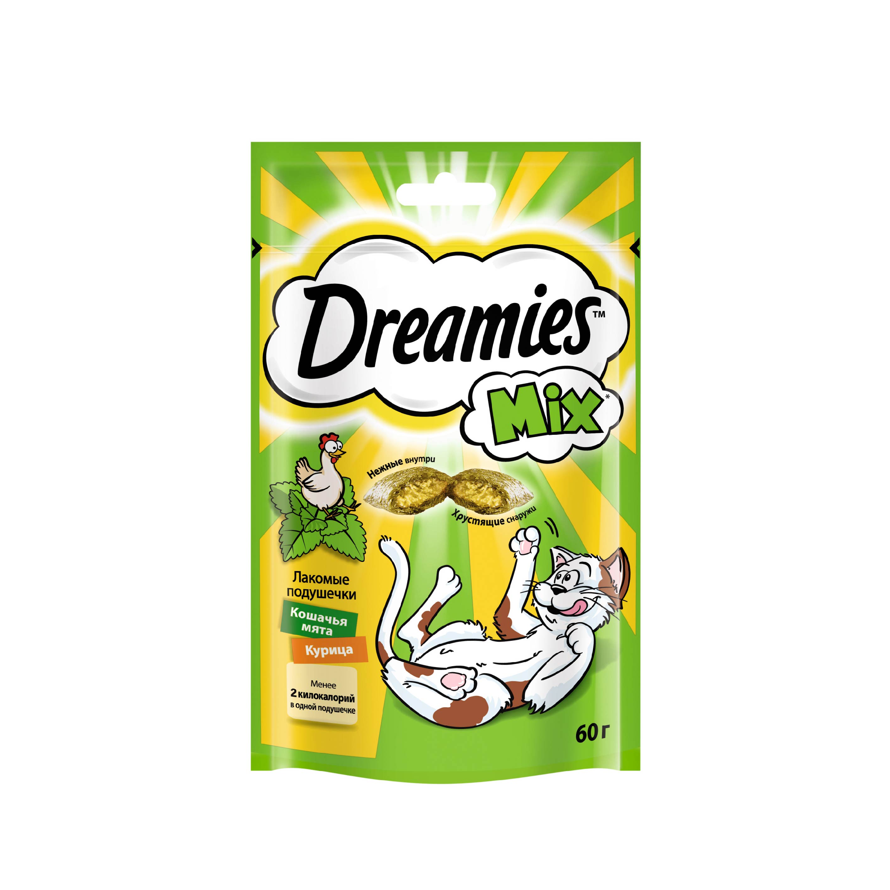 Лакомство Dreamies™ Mix кошачья мята и курица - это яркое сочетание любимых вкусов вашего питомца! Любимая всеми котиками кошачья мята в сочетании с аппетитной курочкой точно не оставит равнодушным вашего любимца.