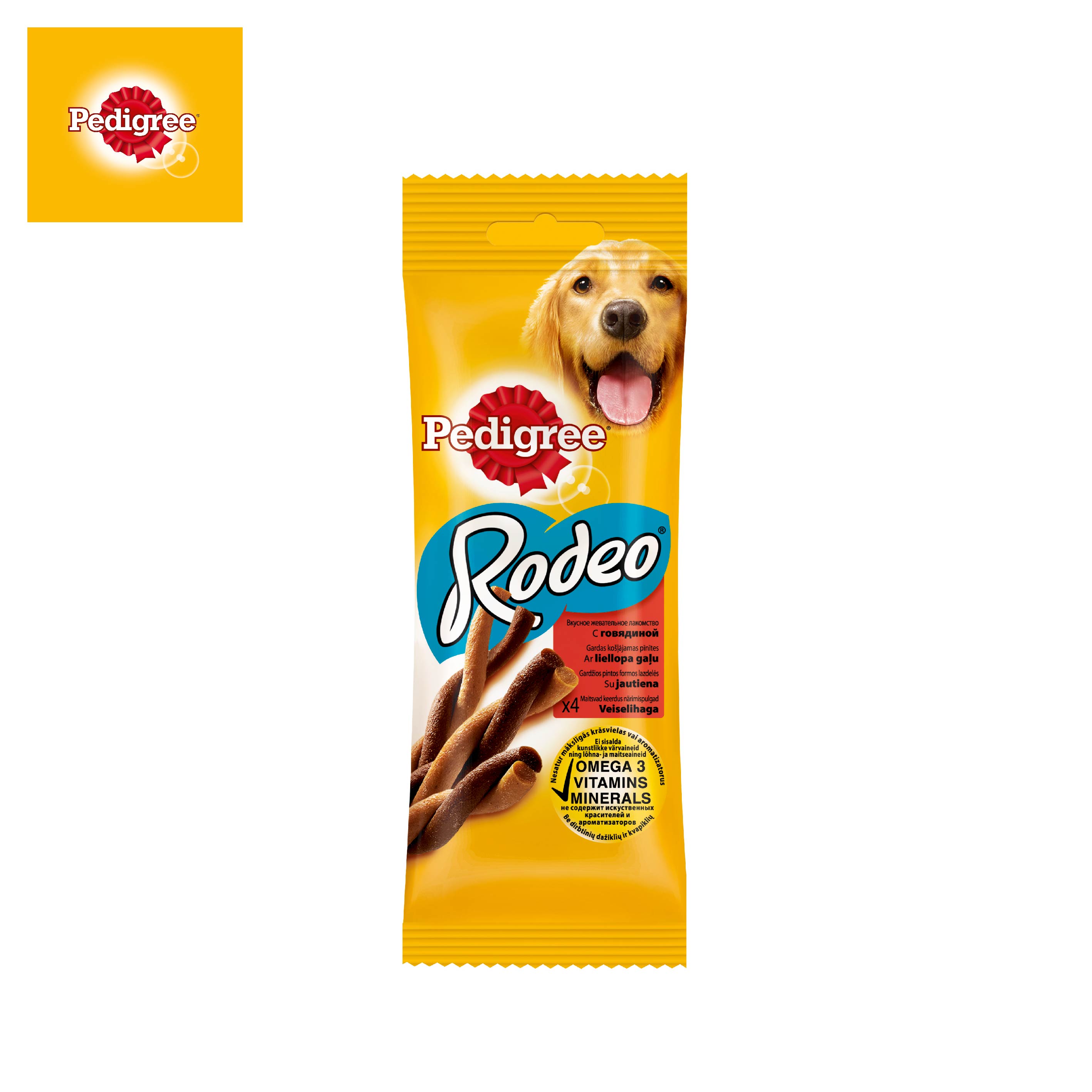 Pedigree ® Rodeo с говядиной доставит удовольствие вашему питмоцу и позаботится о его здоровье. Вашей собаке понравится скрученная форма косичек и аппетитный вкус говядины. Входящие в состав витамины и микроэлементы помогают поддерживать зубы, кожу и шерсть собаки в отличном состоянии.