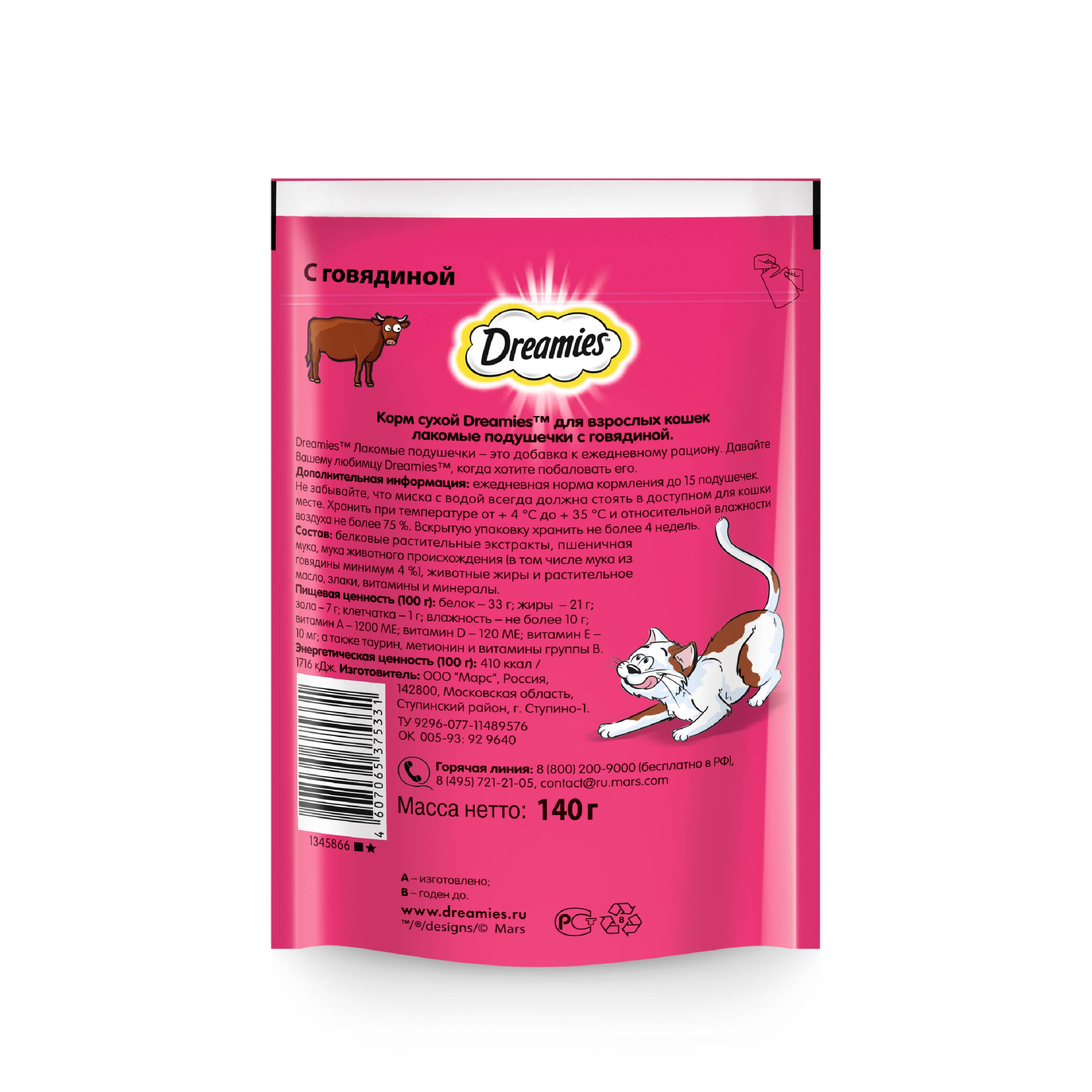 Лакомство для кошек Dreamies подушечки с говядиной, 140г