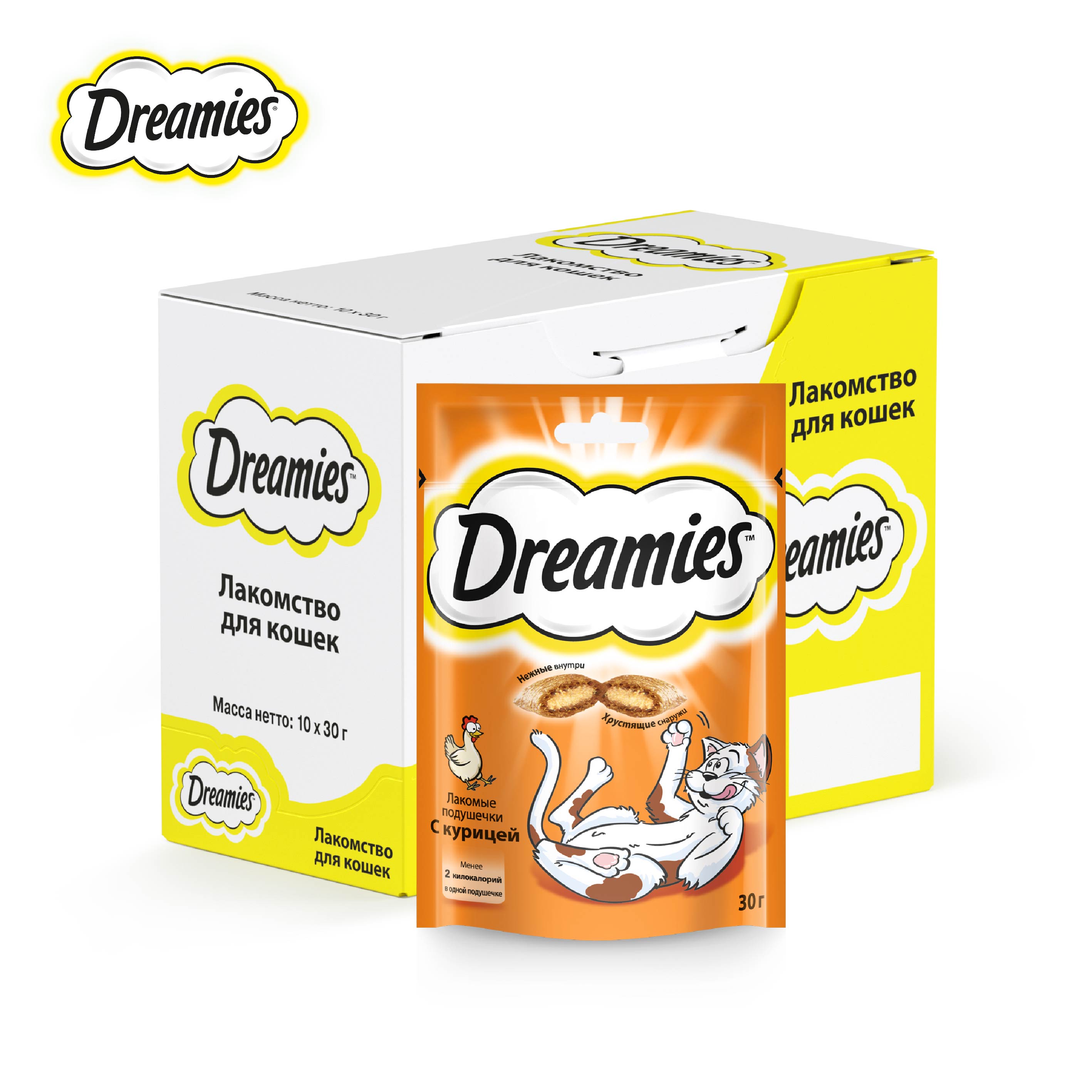 Лакомство для кошек Dreamies подушечки с курицей, 10 шт по 30г