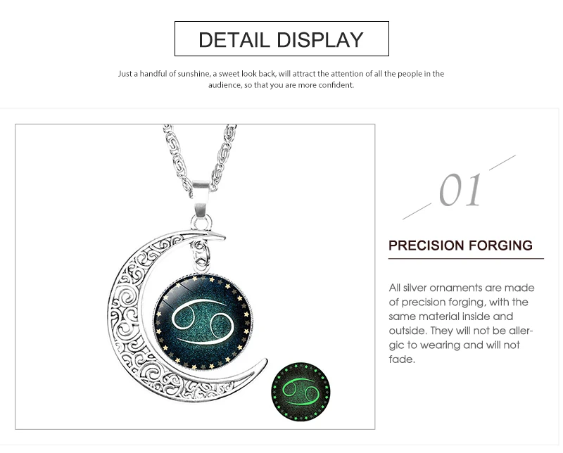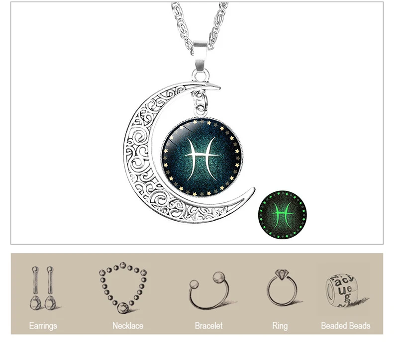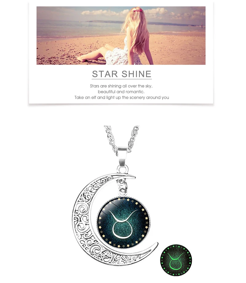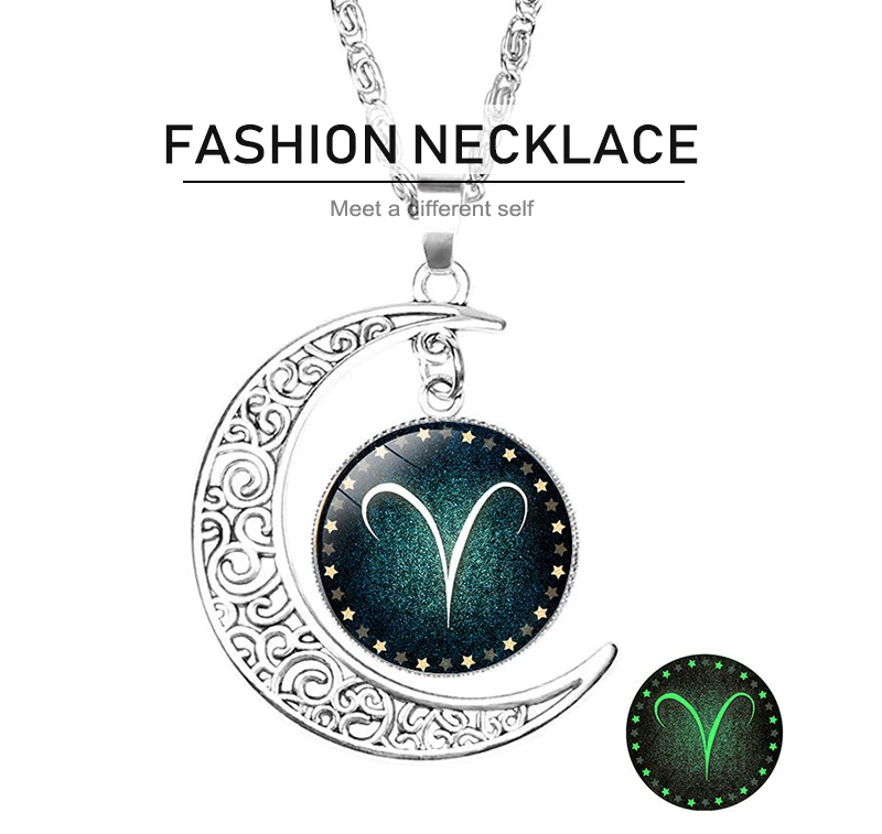 12 ожерелье с созвездием, Знак зодиака, кабошон, стекло, полумесяц, луна, цепочка, ожерелье для женщин, Зодиак, ювелирное изделие, праздничный подарок