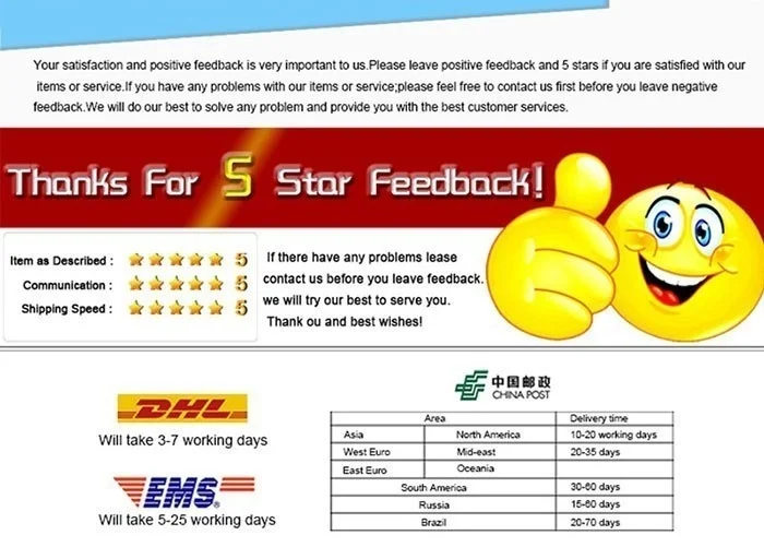 Из-за разного освещения, чтобы увидеть, что сумка будет немного отличаться, пожалуйста, преобладайте в натуральном выражении. ПРИМЕЧАНИЕ: 1.Пожалуйста, убедитесь, что информация о получателях верна, и убедитесь, что это адрес и полное имя, на которое вы можете получать посылки. Мы не принимаем возврат средств из-за неправильного адреса или без полного имени. 2.Все товары есть в наличии после оплаты, за исключением некоторых причин, Обычно мы отправляем вашу посылку в течение 2-4 рабочих дней. После отправки посылки мы не можем ее контролировать, это сильно зависит от международной доставки, мы искренне надеемся, что вы сможете понять и терпеливо ждать. 3.Если ваш заказ задерживается в транспортировке, пожалуйста, свяжитесь с нами, мы поможем Вам продлить время обработки вашего заказа. 4.Если вы являетесь старым покупателем нашего магазина и даете нам 5 звезд и положительный отзыв в своем предыдущем заказе при размещении нового заказа в нашем магазине. Вы можете отправить нам сообщение с номером вашего нового заказа и номером последнего заказа. Мы отправим вам подарок или сделаем дополнительную скидку. |