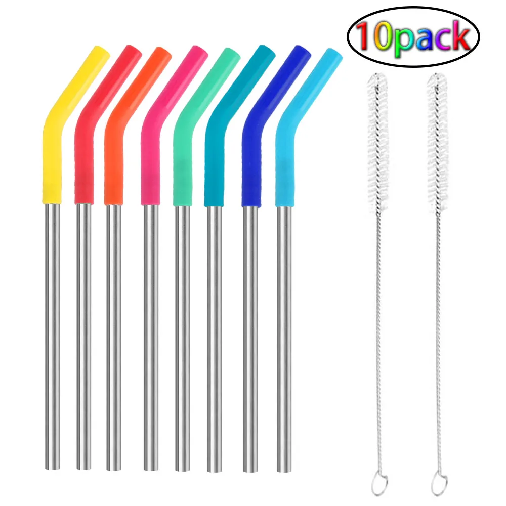 10 многоразовые металлические трубочки для питья силиконовые наконечники из нержавеющей стали гибкие мягкие...
