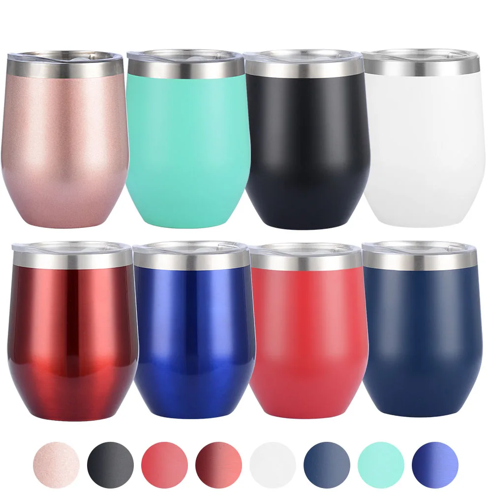 Винные стаканы без ножки чашки 12 унций крышки из нержавеющей стали кофейная кружка яйцо вакуум двойной...