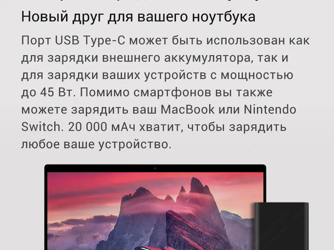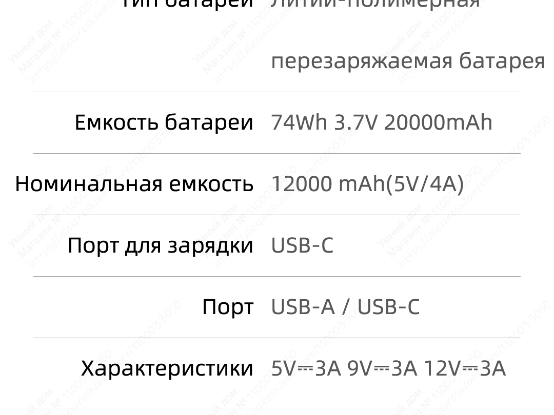 Энергия батареи: 74Wh 3,7 V 20000mAh