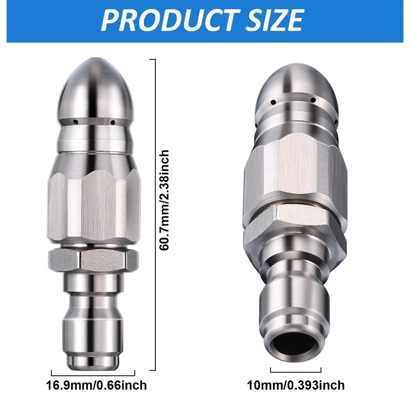 Прочный материал: сопло шланга для слива под давлением изготовлено из нержавеющей стали, которая прочна и устойчива к коррозии, конструкция из нержавеющей стали затрудняет разрыв