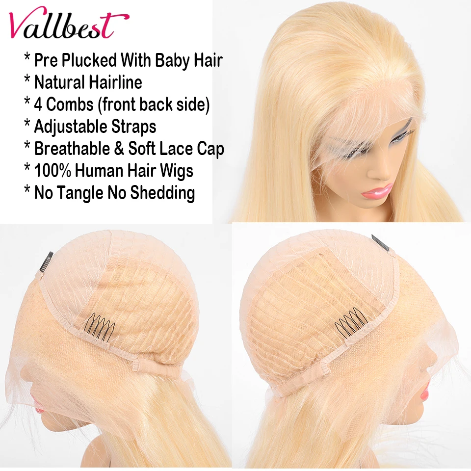 Vallbest 613 блонд парик на фронте шнурка человеческие волосы Малайзия прямые кружевные передние человеческие волосы парики предварительно сорванные с волосами младенца Remy парик