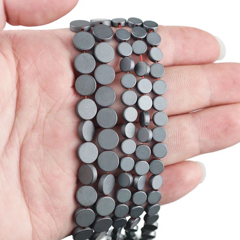Натуральный черный камень матовый монеты гематит 8/6 мм плоский круглый Spacer Бусины для изготовления ювелирных изделий браслет DIY в виде геометрических фигур выводы