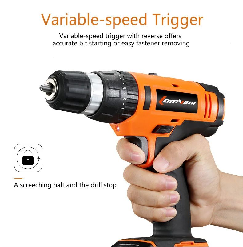 Набор дрели-шуруповерта LOMVUM на 20 вольт упаковывает большой удар в небольшой упаковке, с мощным высокопроизводительным мотором, спрятанным внутри компактной конструкции, которая улучшает комфорт пользователя, особенно при работе в тусклом пространстве в длительное время работы.