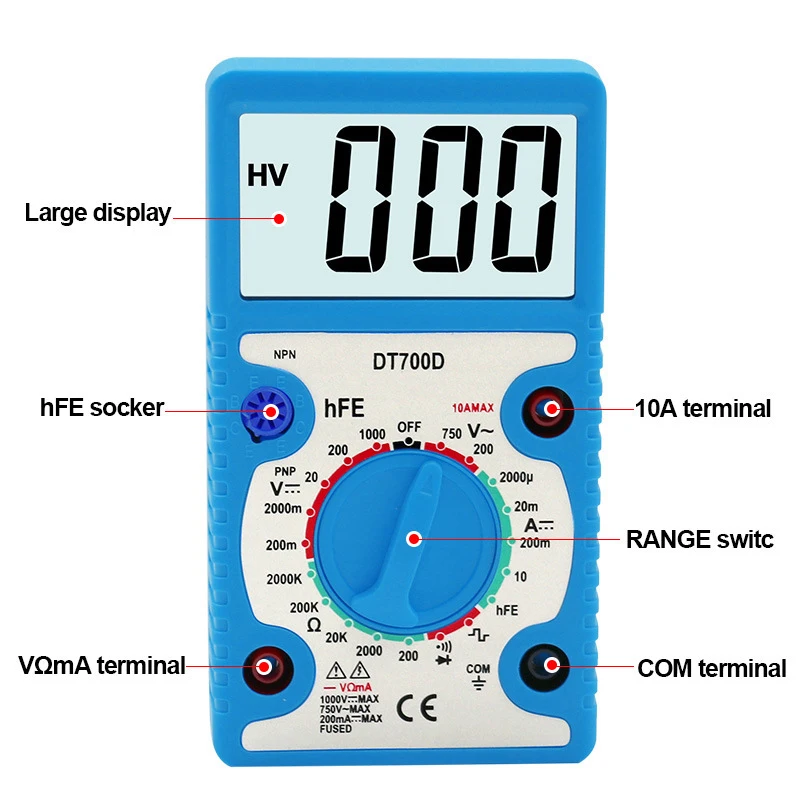<Функция: используется для напряжения постоянного тока, напряжения переменного тока, постоянного тока, сопротивления, тестирования диоды Транзисторы, аудио и вкл.