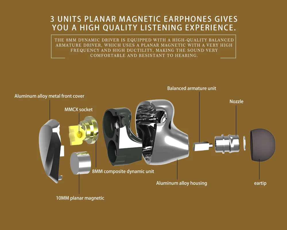 15. Блок драйвера: плоская диафрагма + композитный Динамический драйвер 8 мм + рельефный арматурный драйвер