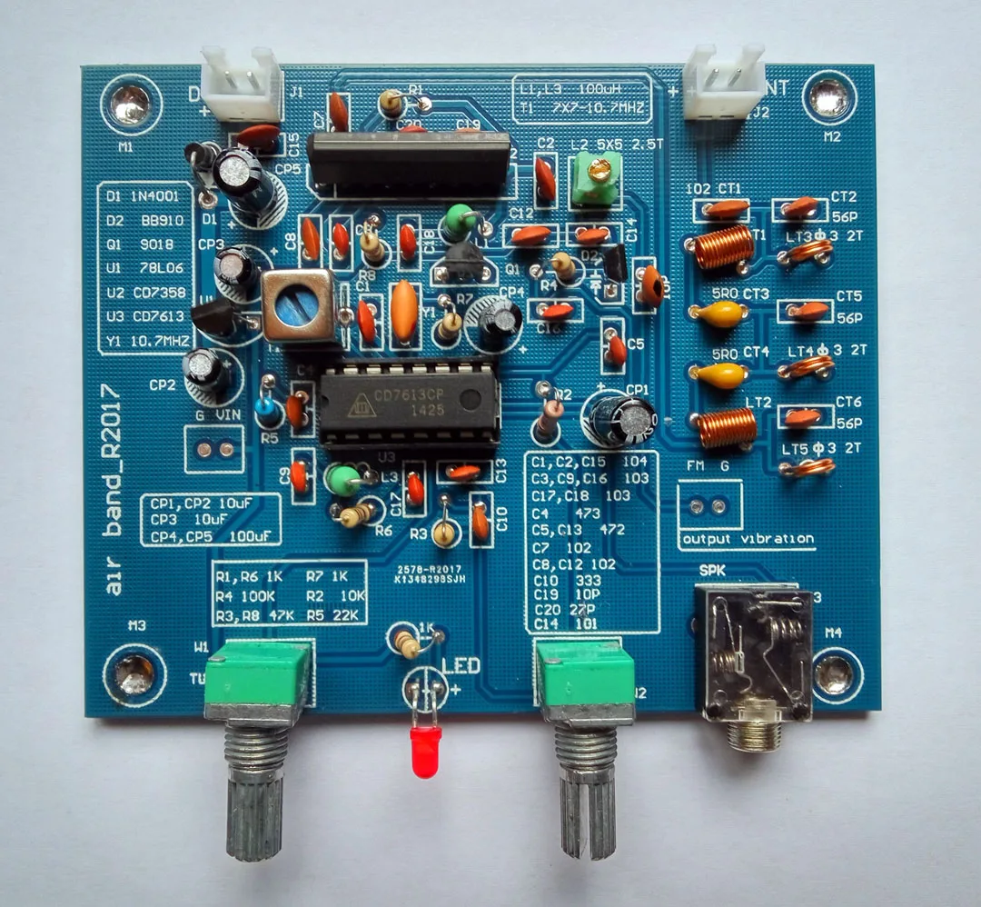 Перед установкой всех компонентов транзистор, резистор, конденсатор с мультиметр тест снова. И затем схема управления и идентичность монтажа PCB всех компонентов. Общее соответствие последовательности установки от низкого до высокого. Чтобы установить гнездо в интегральной цепи в то же время, это может эффективно избежать сердцевины сварки интегральной схемы. Проверьте все в порядке, после включения сока и розетки вставьте гарнитуру, поместите W2 поверните по часовой стрелке до конца, должны быть в состоянии услышать белый шум. Для антенны, подключенной к мягкой линии 60 сантиметров, можно услышать шум значительно больше или услышать fm-радио, радио частоты (rf) основной канал без проблем.