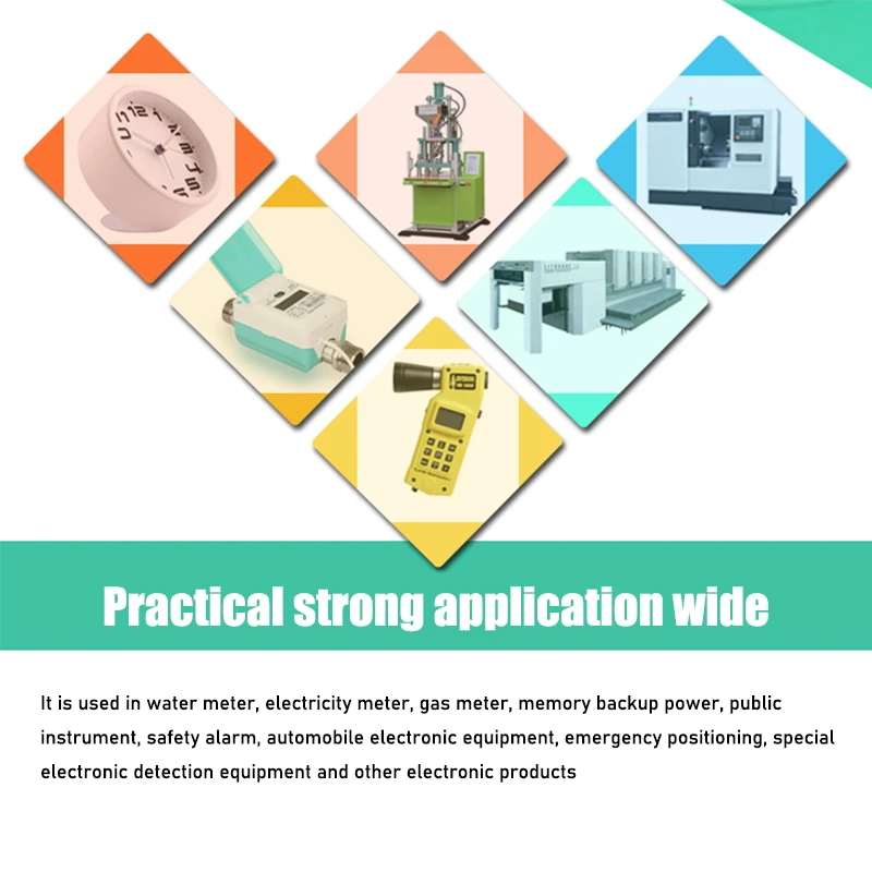 Он широко используется в станках с ЧПУ, серверах, программировании, PLC, CNC, литьевой машине, печатной машине, сенсорном экране и электрическом измерителе, счетчике воды, часах в реальном времени, резервном источнике питания памяти, различные измерительные приборы и т. Д.