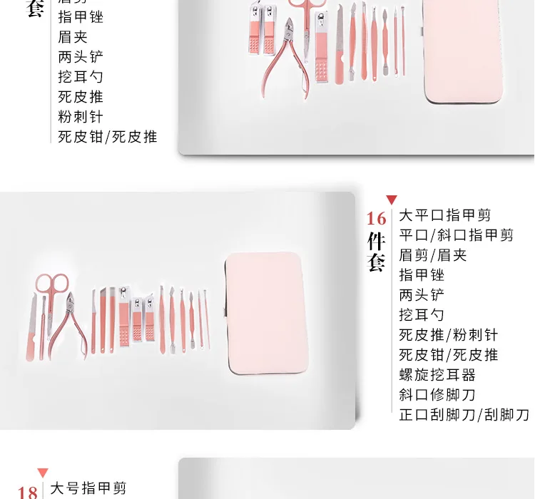 18/16/12/10/7 шт нержавеющая профессиональные стальные нержавеющие ногтевые Набор для маникюра и педикюра, Ножи маникюрные ножницы уход за Портативный кроя педикюрный набор