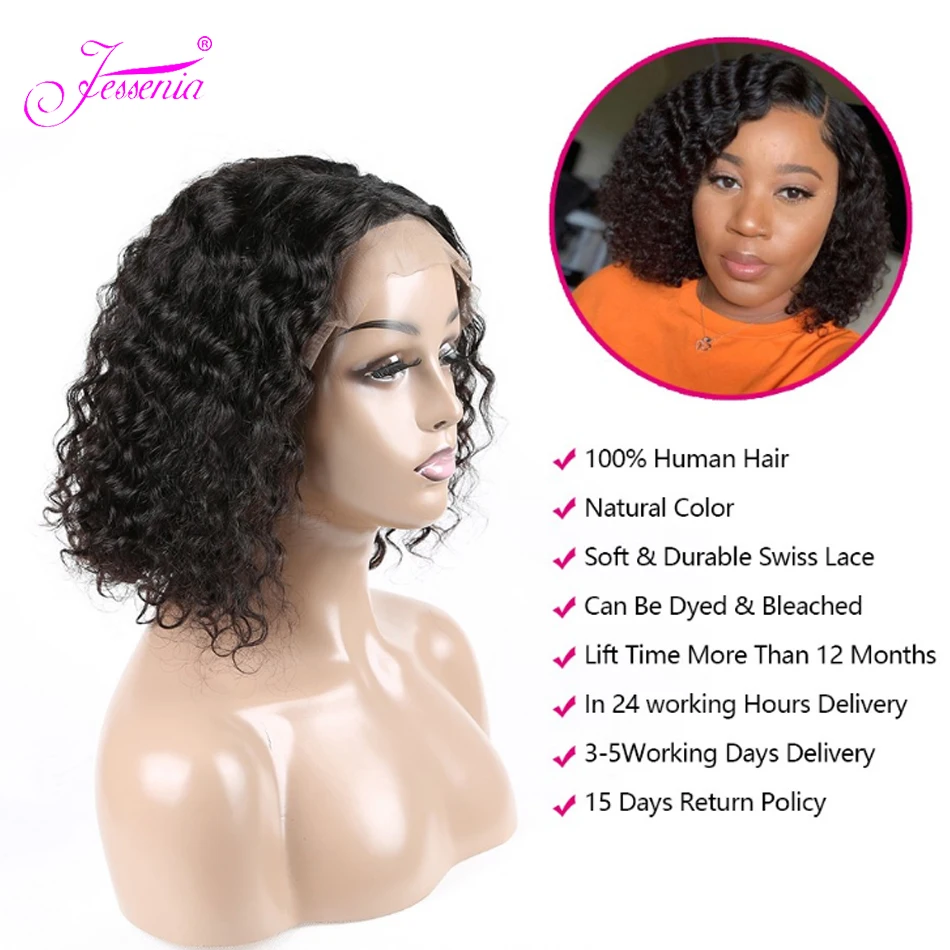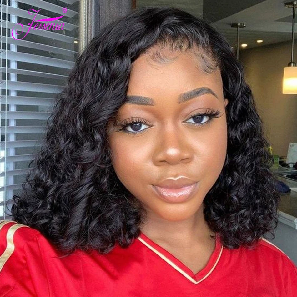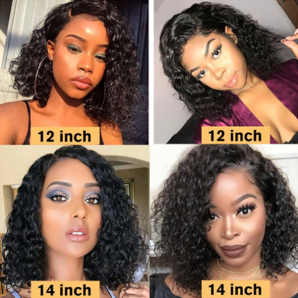 Парики из натуральных волос крупными волнами 13X4 Bob 100%, 4X4 на сетке, бразильские волосы Remy, короткие кудрявые парики боб, глубокие кудрявые водные парики боб