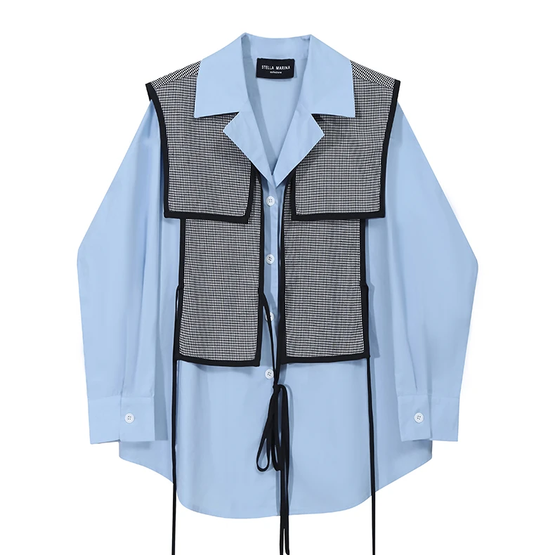 Женская Весенняя хипстерская блуза с длинным рукавом из двух частей 2021, комплекты и черный жилет, Женская уникальная женская рубашка