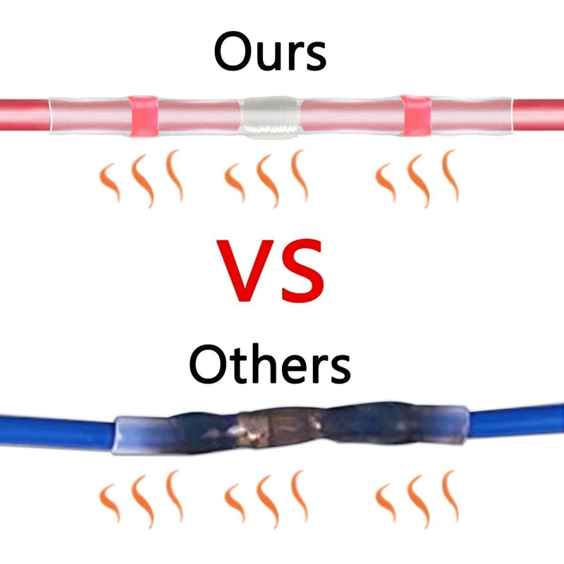 Apply heat evenly to the connector from the 2 ends first until tubing shrinks and the adhesive flows, then continuously apply heat evenly until solder sleeve melt and seal.