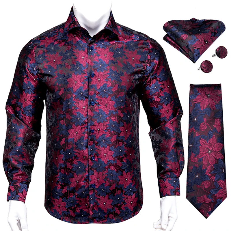Мужская рубашка с длинным рукавом Hi-Tie темно-синяя Повседневная принтом пейсли