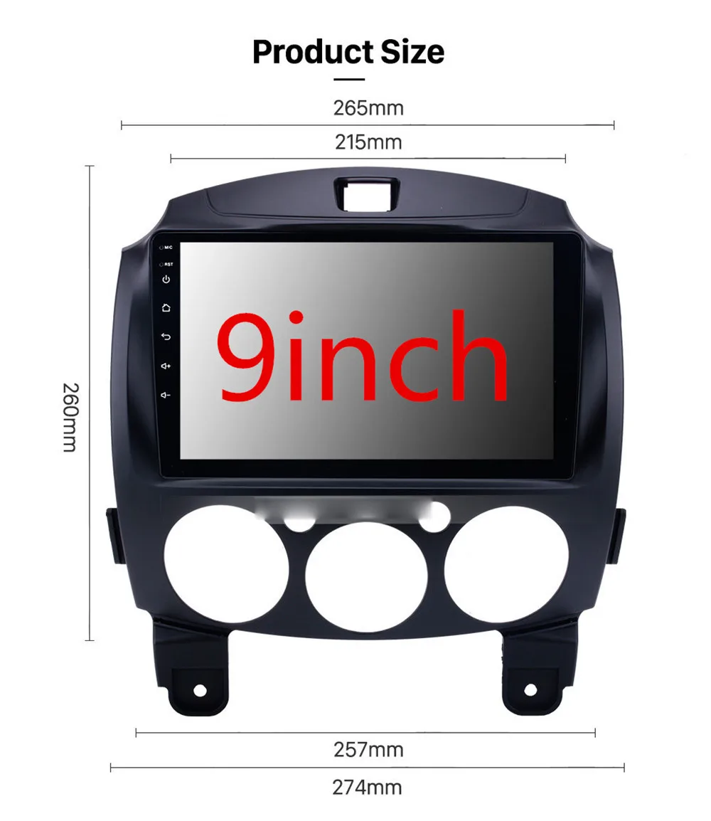 2-Year20112-Year20122-Year20132-Year2014Model Namefor Mazda 2 2007-2013Brand NameYILUZHEOriginMainland ChinaCertificationFCCOperating SystemAndroidVoltage12VDisplay Size9"InterfaceUSBMaterial TypeABS+MetalItem Weight1.8Special FeaturesbluetoothSpecial FeaturesBuilt-in GPSSpecial FeaturesMobile PhoneSpecial FeaturesMP3 PlayersSpecial FeaturesRadio TunerSpecial FeaturesTouch ScreenSpecial FeaturesTVOSD LanguageChinese (Simplified)OSD LanguageChinese (Traditional)OSD LanguageAlbanianOSD LanguageArabicOSD LanguageAzeriOSD LanguageIrishOSD LanguageEstonianOSD LanguageBelarusianOSD LanguageBulgarianOSD LanguageIcelandicOSD LanguagePolishOSD LanguagePERSIANOSD LanguageBoolean text (Dutch South Africa)OSD LanguageDanishOSD LanguageGermanOSD LanguageRussianOSD LanguageFrenchOSD LanguageFilipinoOSD LanguageFinnishOSD LanguageGeorgianOSD LanguageHaitian CreoleOSD LanguageKoreanOSD LanguageDutchOSD LanguageGaliciaOSD LanguageCatalanOSD LanguageCzechOSD LanguageCroatianOSD LanguageLatinOSD LanguageLatvianOSD LanguageLithuanianOSD LanguageRomanianOSD LanguageMalteseOSD LanguageMalayOSD LanguageMacedonianOSD LanguageNorwegianOSD LanguagePortugueseOSD LanguageJapaneseOSD LanguageSwedishOSD LanguageSerbianOSD LanguageSlovakOSD LanguageSlovenianOSD LanguageSwahiliOSD LanguageThaiOSD LanguageTurkishOSD LanguageWelshOSD LanguageUkrainianOSD LanguageHebrewOSD LanguageGreekOSD LanguageSpain's BasqueOSD LanguageSpanishOSD LanguageHungarianOSD LanguageArmenianOSD LanguageITALIANOSD LanguageYiddishOSD LanguageHindiOSD LanguageUrdu IndiaOSD LanguageIndonesiaOSD LanguageEnglishOSD LanguageVietnameseMax External Memory32GFor Vehicle Brands/ModelMAZDAOut Power4x45WItem Size265*260*274mmResolution1024x600Digital Media FormatMp3Digital Media FormatMP4Digital Media FormatWMADigital Media FormatJPEGRAM2GROM32GSpecial FeatureBuilt-In Speaker/MicrophoneSpecial FeatureWifi FunctionSpecial FeatureSupport Steering Wheel ControlTF/Micro SD Slot0DinDouble DinMeasurement unitpiece/piecesEach pack1Mazda Model2SystemAndroid 10.1GPS Navigation maponline mapBluetoothbuilt-insupportDVR/OBD/SWC/USB/WIFIfit-1for Mazda 2 2007fit-2for Mazda 2 2008fit-3for Mazda 2 2009fit-4for Mazda 2 2010fit-5for Mazda 2 2011fit-6for Mazda 2 2012fit-7for Mazda 2 2013