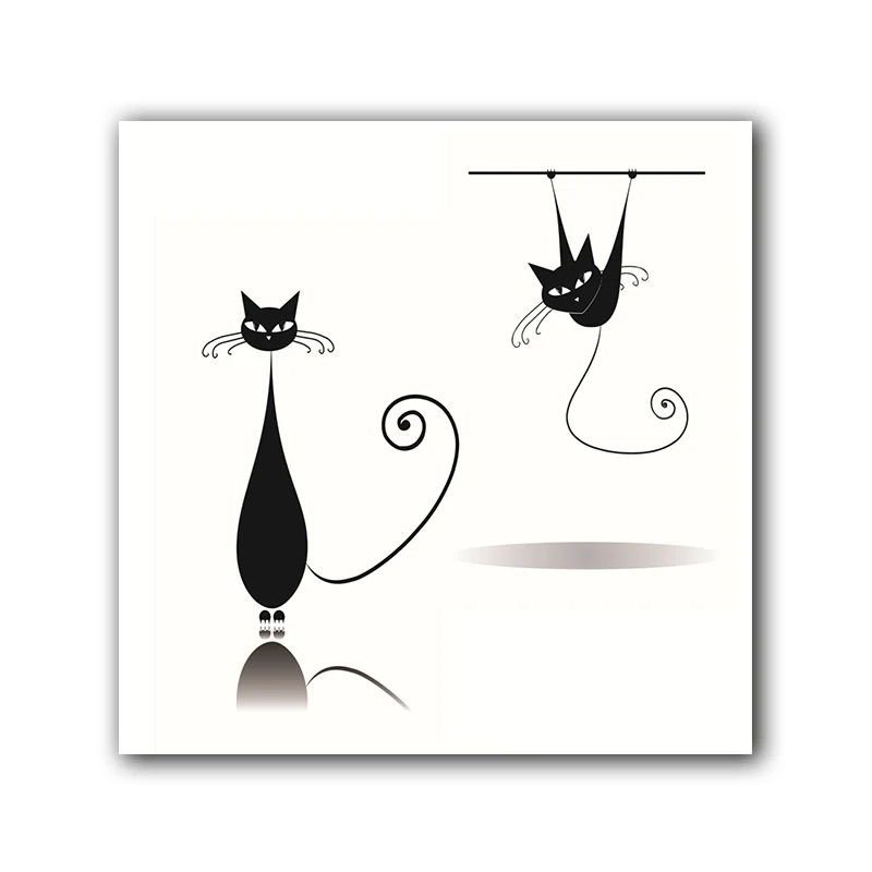 Минималистичная Картина на холсте с изображением милой кошки и головы черного