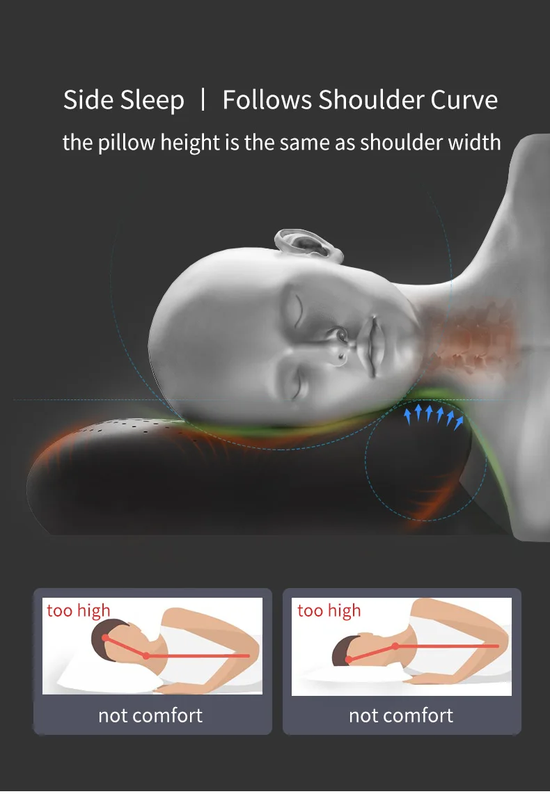 3. 【Облегчение боли в шее 】 эргономичный дизайн, позволяющий полностью расслабить мышцы шеи и плеч. Контурная форма способствует правильному выравниванию, облегчая дискомфорт в шее и спине, омолаживая ваше тело во время сна