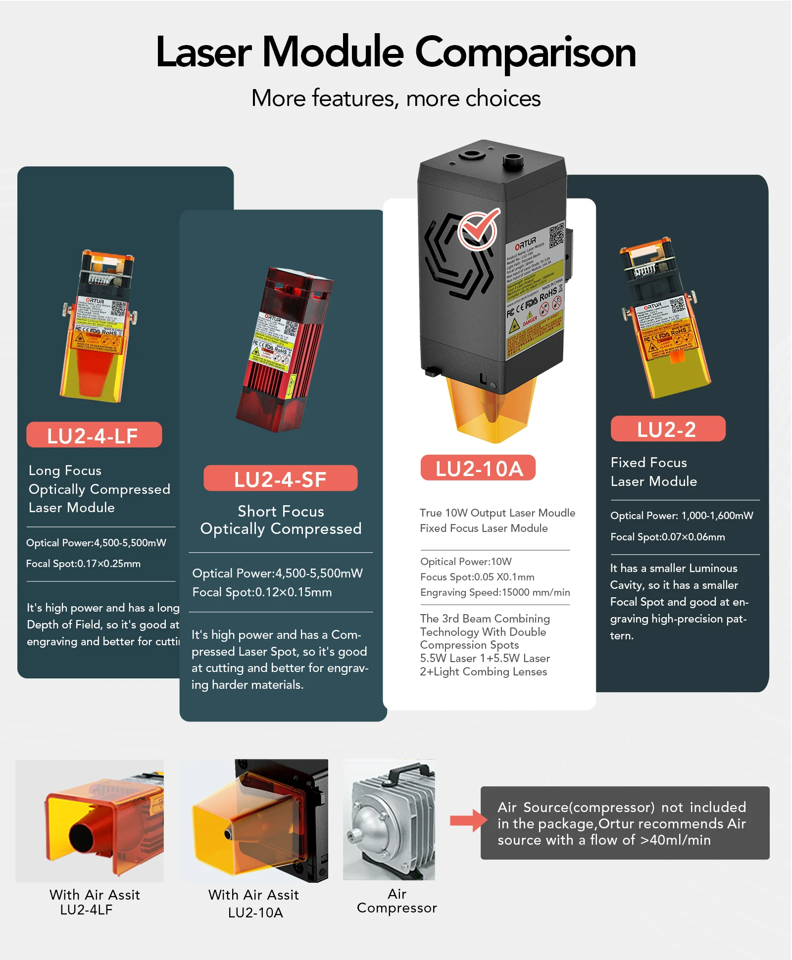 Новейшая технология лазерного луча с сжатым фокусным расстоянием:Ortur Laser Master 2 S2 использует новейший 5,5 W higly сжатый фокусное расстояние лазер modulediode, он имеет ультра-тонкий 0,06 мм острый лазерный фокус, с супер прониканием и точностью резки, может резать до 12 мм толстой древесины, 10 мм акрила, резной керамики и нержавеющей стали.