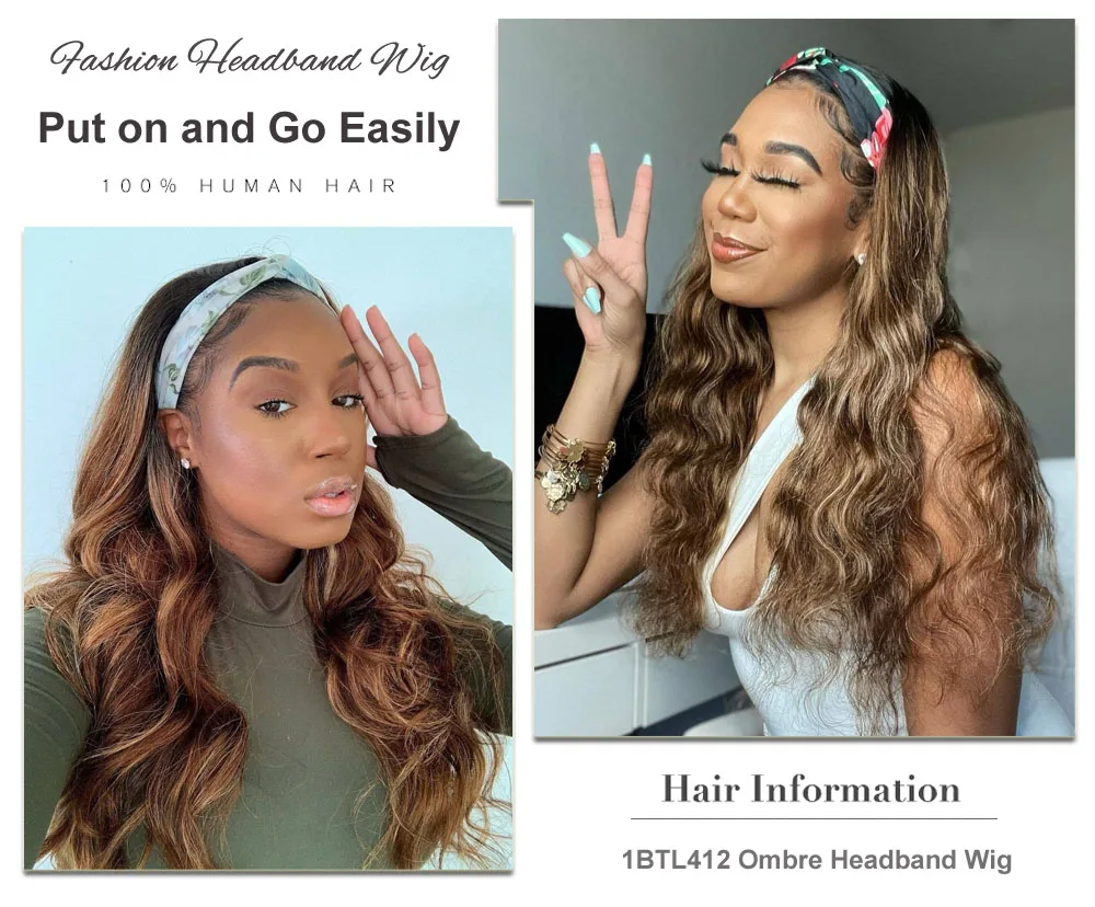 Объемная волна парик с головной повязкой медовый блонд малайзийские волосы Омбре повязка на голову манекен для шарфа парика коричневый балаяж изюминка человеческие волосы парики для женщин