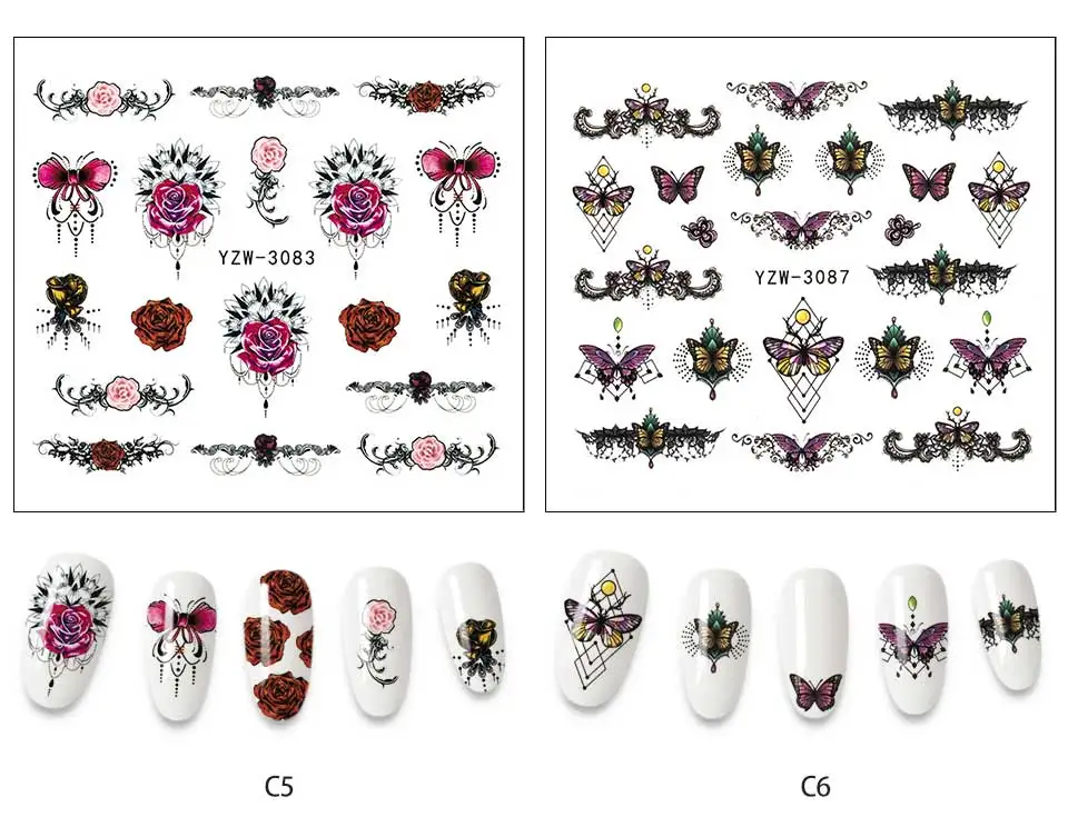 1 лист милых цветочных стикеров для дизайна ногтей Коллекция наклеек маникюра