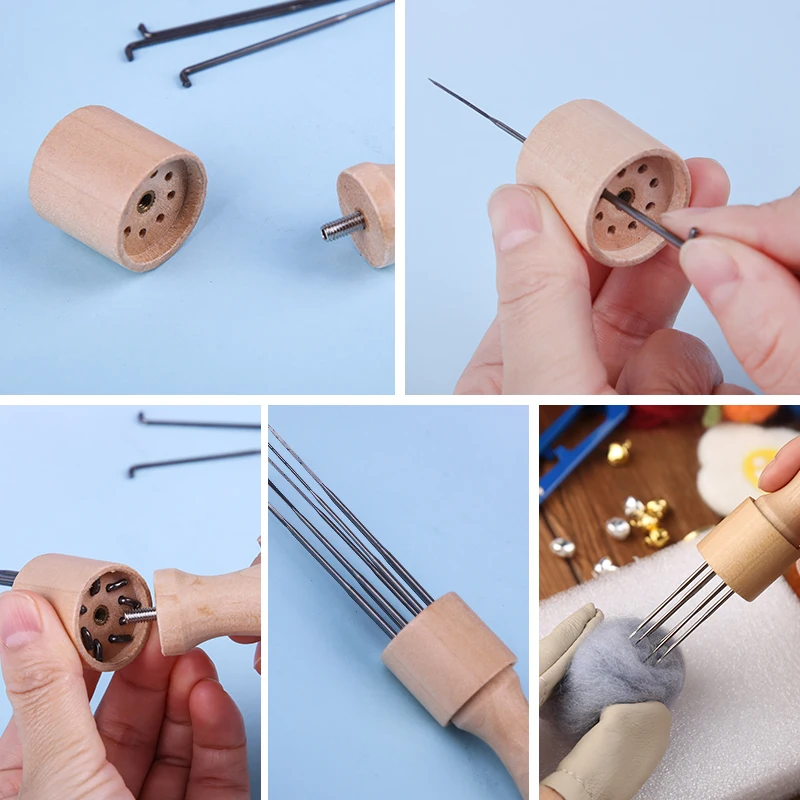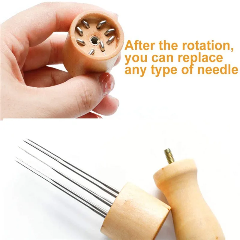 Инструмент с деревянной ручкой 2,8 иглы: деревянная ручка замечательно подходит для ускорения процесса валяния иглой. На нем можно использовать от 1 до 8 игл, Он удобен и эргономичен в руке, не скользит.