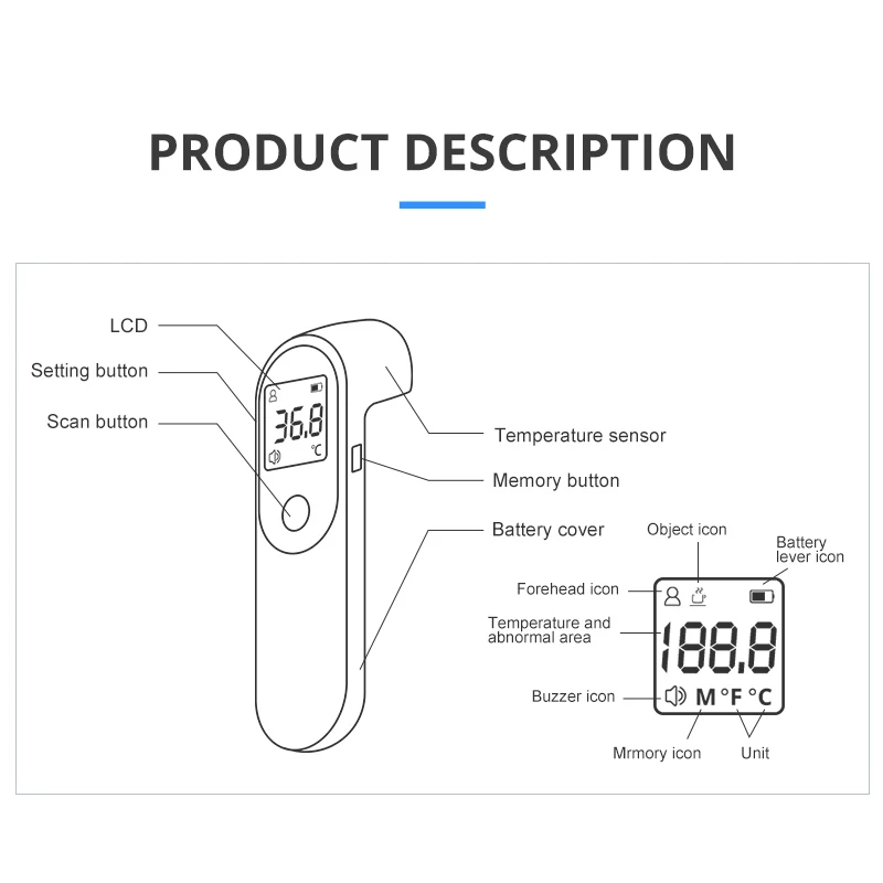 Цифровой термометр Sinocare ELERA с ЖК дисплеем Инфракрасный Бесконтактный