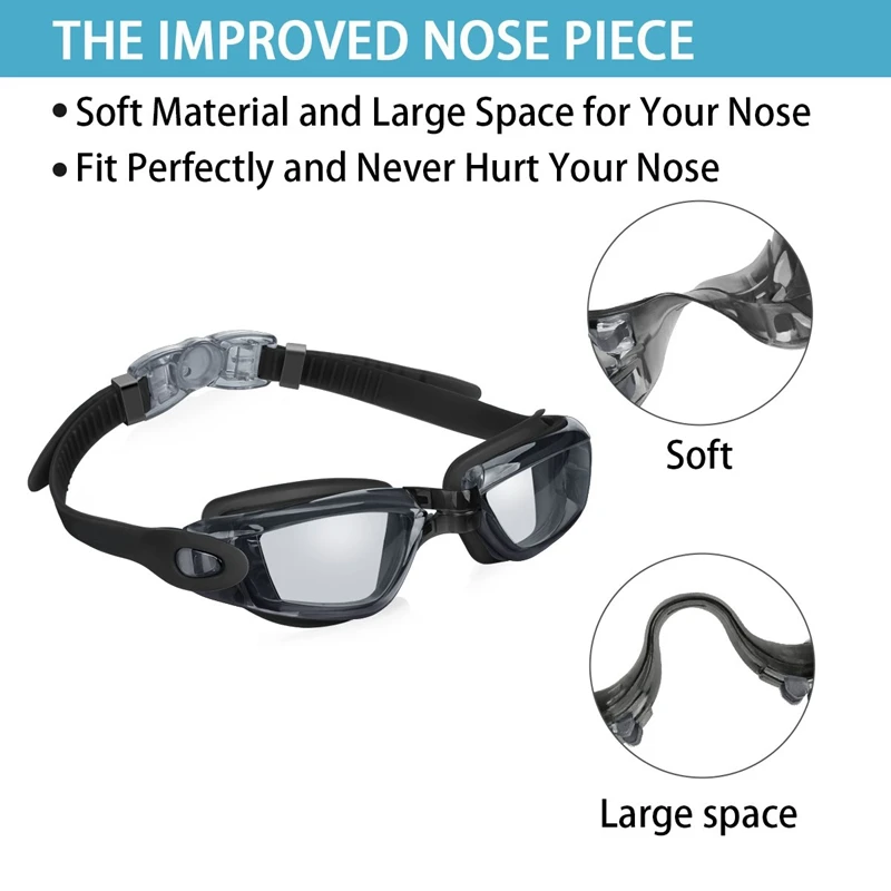Наши плавательные очки имеют Улучшенный мостик для носа, мягкий материал и очень большое пространство, это никогда не повредит ваш нос.