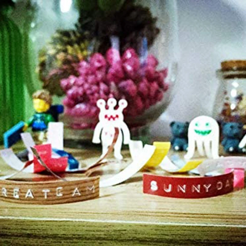 6 * лента с тиснением (белый текст на деревянном фоне, белый текст на черном фоне, Белый текст на желтом фоне, Белый текст на синем фоне, Белый текст на красном коричневом фоне, Белый текст на прозрачном фоне, каждый)