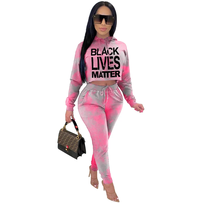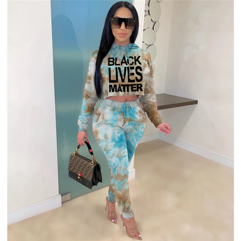 Adogirl галстук с буквами краситель печати комплект из двух частей для женщин с длинным рукавом толстовки укороченный топ брюки карандаш 2020 осень новый спортивный костюм