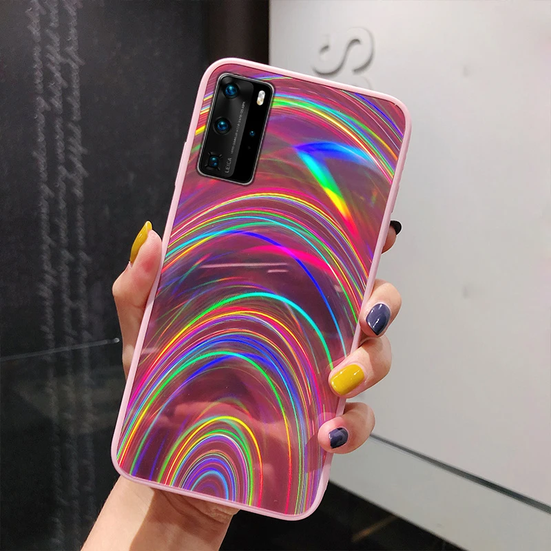 Цветной Радужный лазерный чехол LOVECOM для Huawei P40 P30 P20 Pro Mate 30 20 Pro роскошный акриловый мягкий чехол для телефона