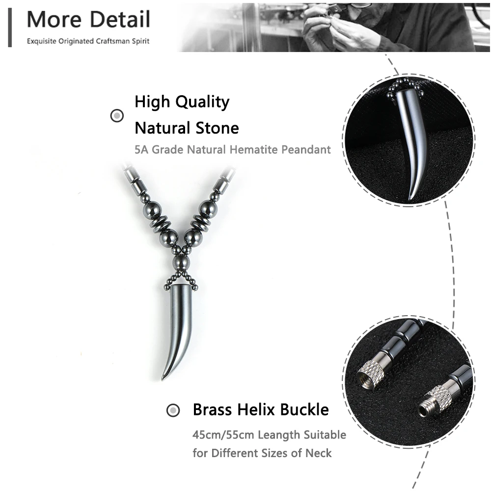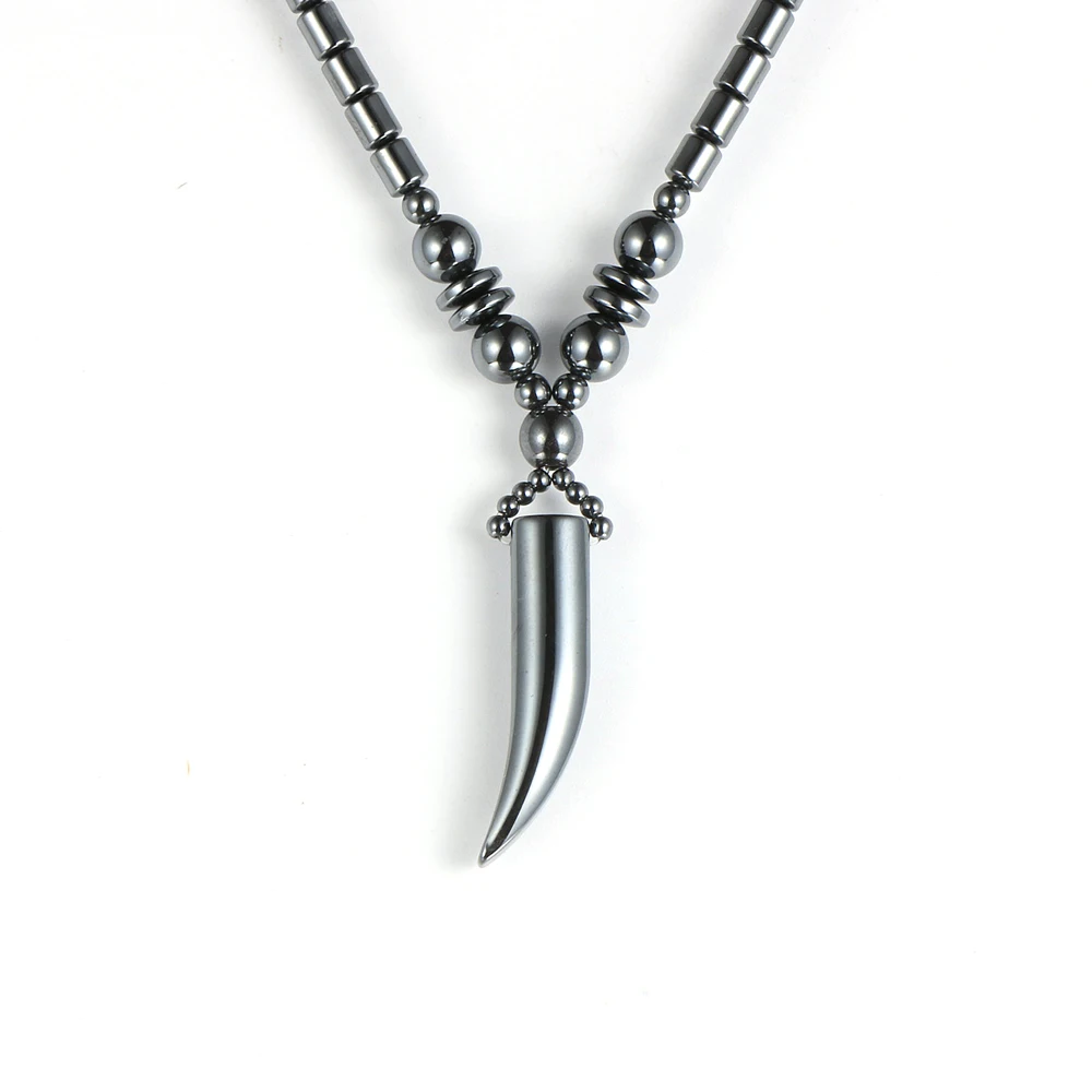 Артикул:Мужские и женские гематит Рога Подвески Натурального Гематита, рог зуб Шарм колье на цепочке ожерелье ювелирные изделия