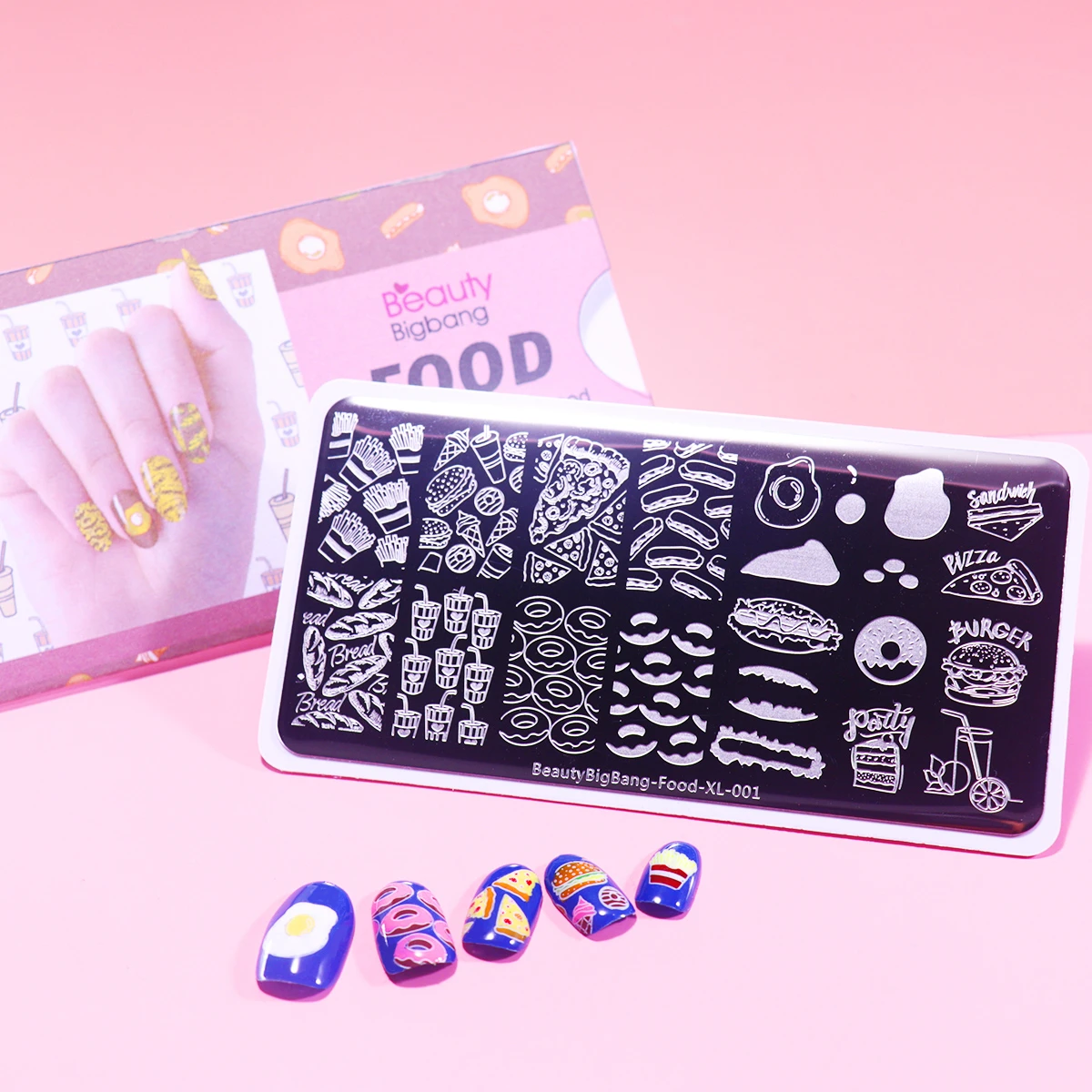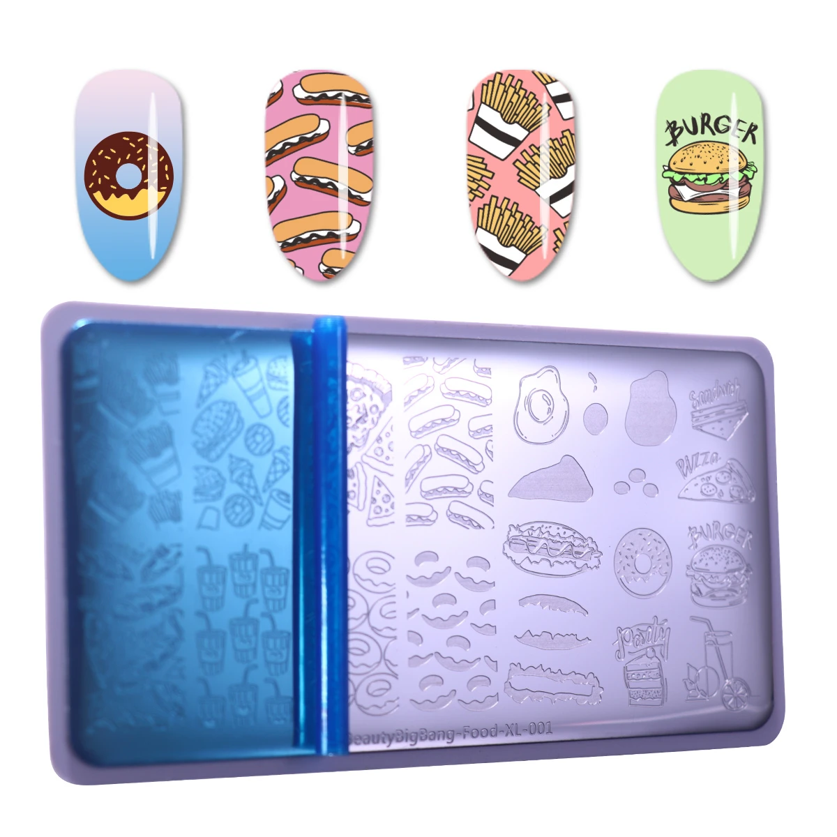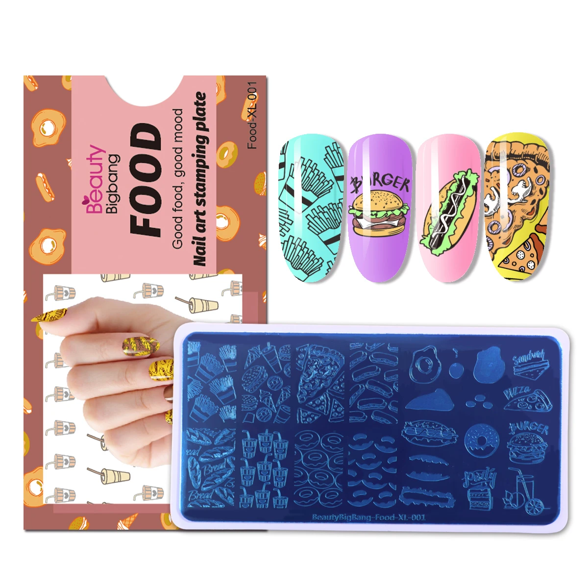 Красота большого взрыва штамповки пластины еда XL-001 Гамбург пончик хот-дог хлеб сок изображение нержавеющая сталь дизайн ногтей трафарет шаблон