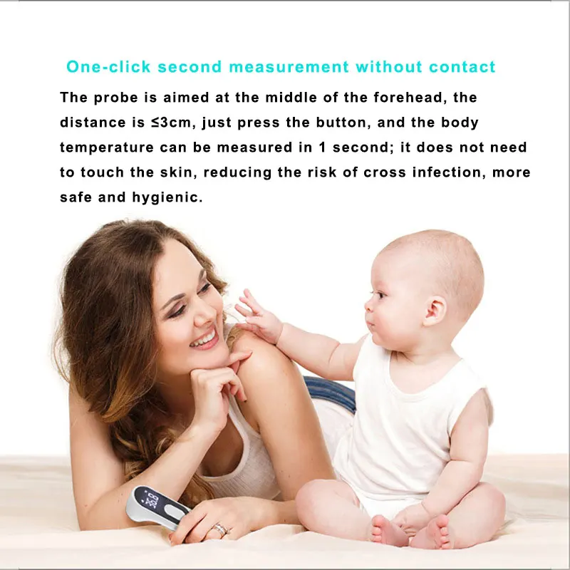 Бесконтактная инфракрасная технология-не трогать, остановить перекрестную инфекцию, дать ребенку более здоровую окружающую среду. Зуммер напомнит-когда температура лба выше нормального уровня, термометр предупредит вас с помощью зуммера. 1 сек мгновенное чтение, простота в использовании-Простота в эксплуатации и приятный внешний вид. Этот режим имеет режим отключения звука и не раздражает Пробуждение ребенка, когда он старается получить температуру во время ночи и сна.