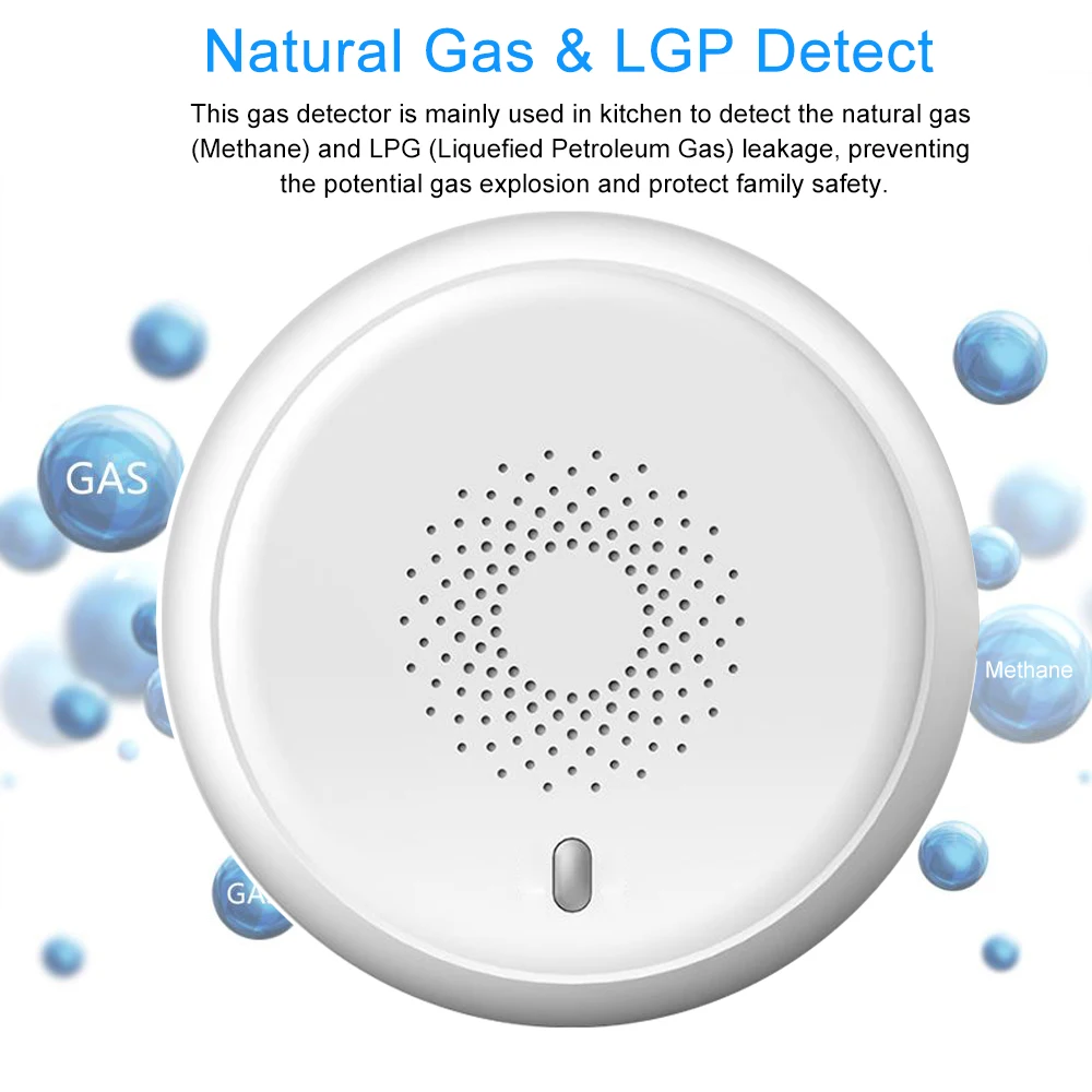 Продукт представляет собой умный детектор горючего газа ZigBee Tuya со звуковым сигналом тревоги. При запуске детектора газа, он будет оповещать со встроенной сиреной. Этот детектор принимает полупроводниковый датчик, который является стабильным и надежным. Он защищает место от опасности горючего газа (например, сжиженного нефтяного газа, природного газа, метана и т. Д.). Он широко используется в кухне, гостиной, гараже, торговом центре, отеле, ресторане, офисном доме, школе, банке, библиотеке, компьютерном доме и хранилище, И т. Д., где нет водяного пара и есть риск горючего газа.
