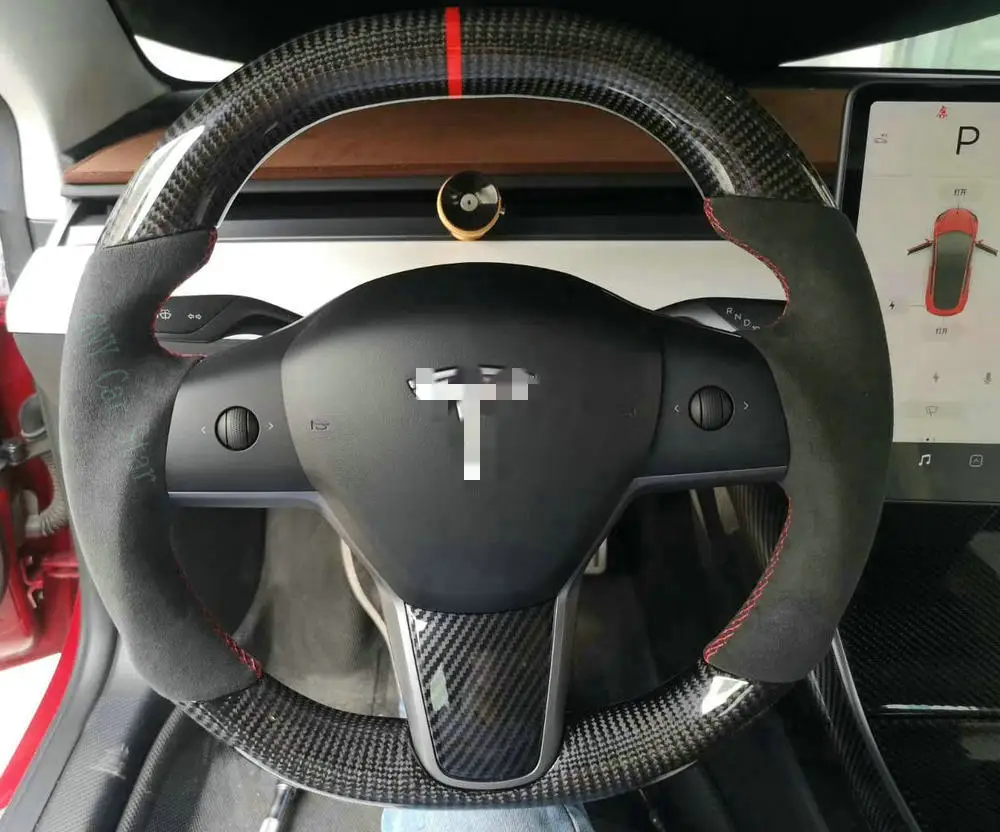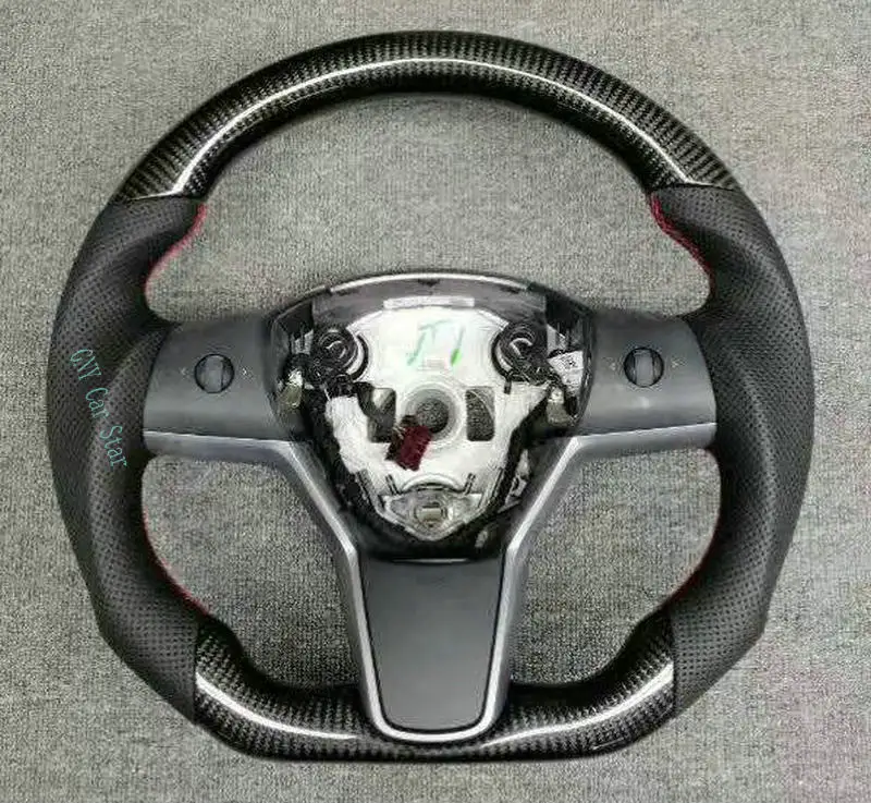 100% натуральное углеродное волокно/кожаный руль для Tesla (без центральной отделки без подушки безопасности)
