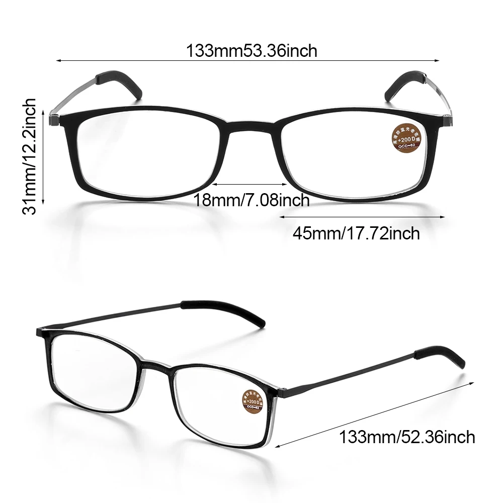 Рамка Ширина: 133 мм (5,2 дюймов) Объектив Ширина: 45 мм (1,8 дюймов) Высота линзы: 31 мм (1,2 дюймов) Длина планки между проемами линз Ширина: 18 мм (0,7 дюймов) Храмов Длина: 133 мм (5,2 дюймов) Вес: 61 г (2,2 унции) (с чехол)