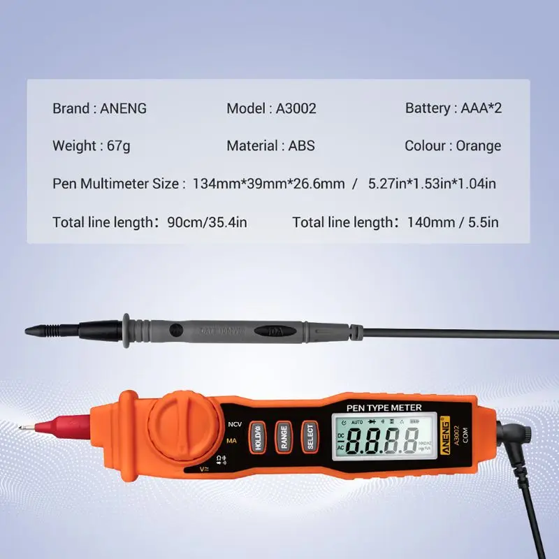 A3002 Цифровой мультиметр 4000 расчетов Ручка Тип с бесконтактным ACV/DCV электрический ручной тестер