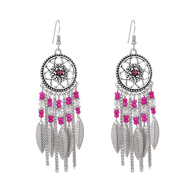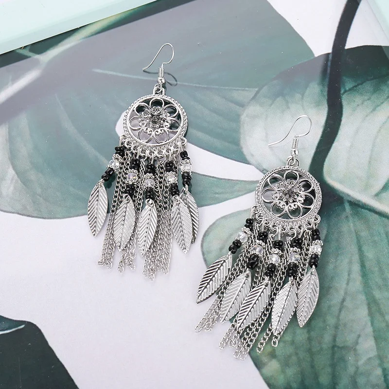 Серьги-подвески женские посеребренные с бусинами висячие ювелирные украшения