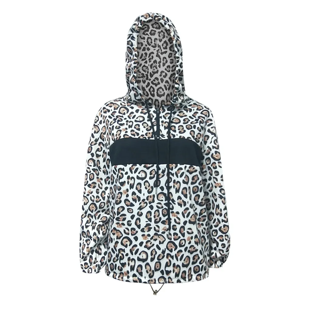 Womens Fashion Long Sleeve Leopard Printed V-neck Hooded Sweater Blouse Tops