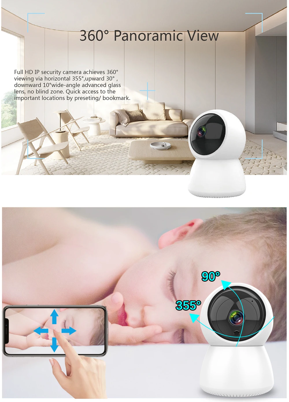 * Широкоугольный объектив 85 ° обеспечивает Панорамное покрытие 355 °.