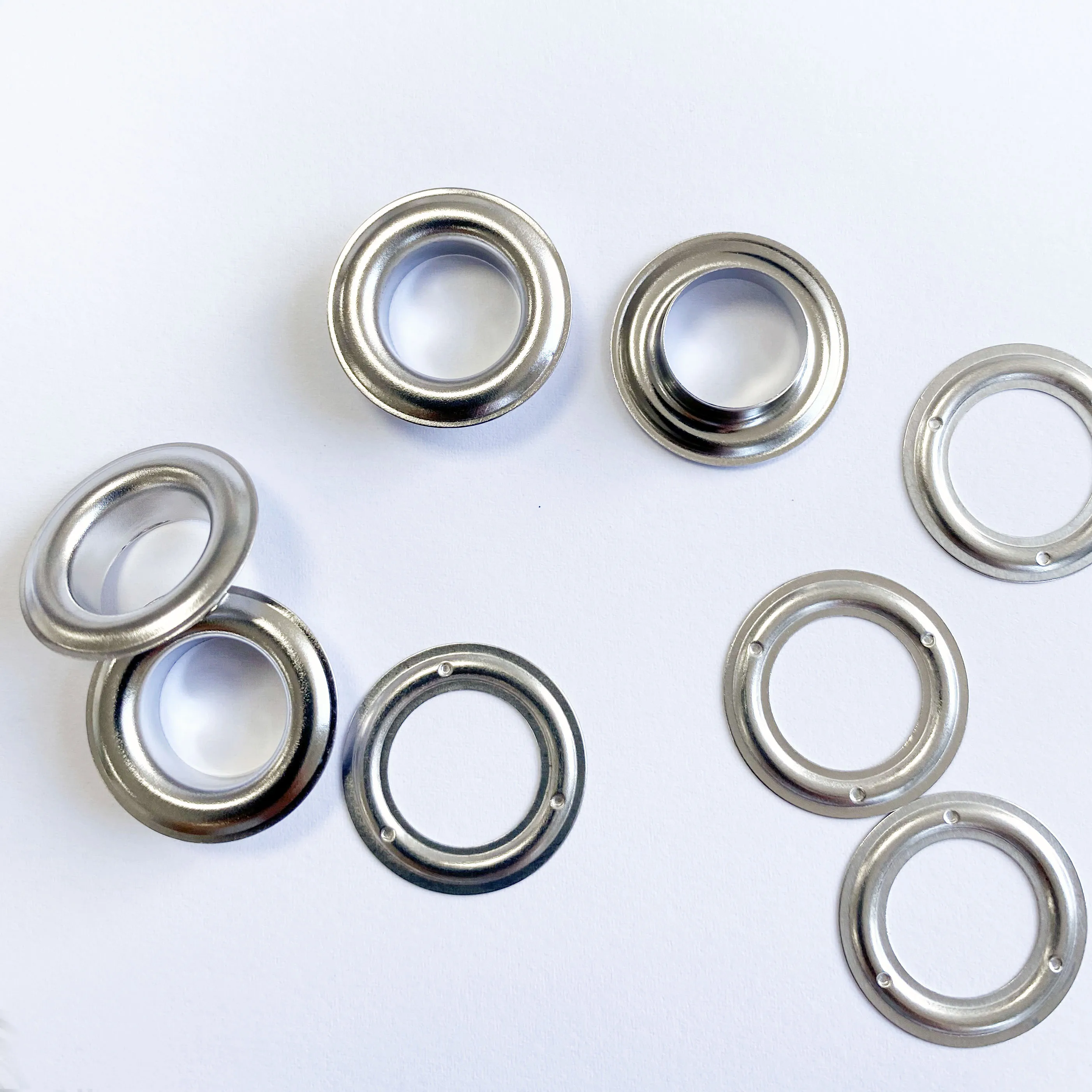 Материал люверсов-латунь, цвет может быть серебристый, золотой, античная латунь или оружейный металл.