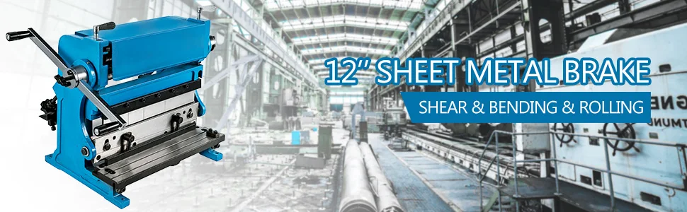 Industrial 12-Inch machine equips with the combination of shear, press brake, and roll. The shear makes straight cuts up to 12” while the press brake can bend to 90 degrees of material. The combination machine of shear, brake and roll applied adjustable finger dies for pans and boxes. It is a smart choice for any metalworking shop.