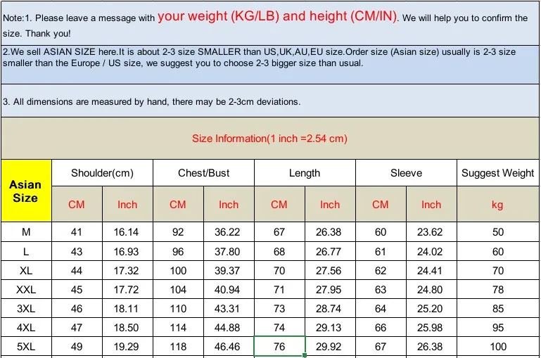 Таблица размеров