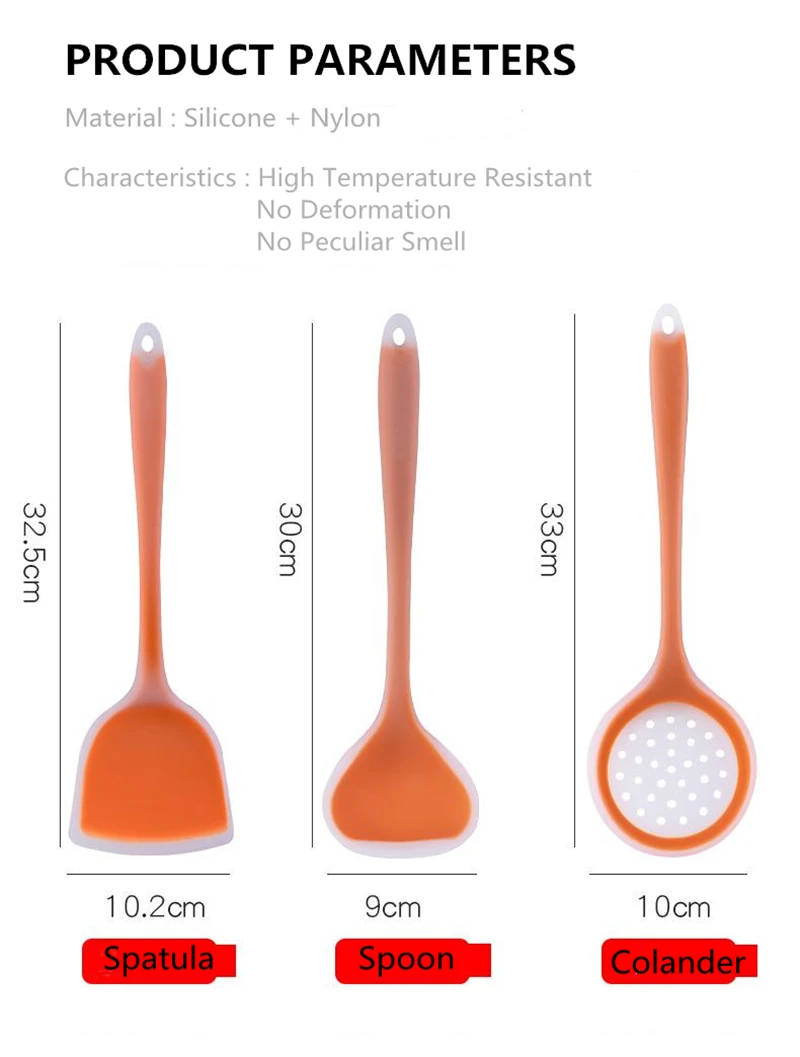 Описание: * 1. Материал: силикон + нейлон * 2. Цвет: оранжевый * 3. Размер (приблизительно): Как показано на изображении ниже * 4. Вес нетто: около 550 г * 5. Температура: -40 ℃ (низкая температура), 250 ℃ (высокая температура) Особенности: * 1. Силикон обладает хорошей стабильностью высокой и низкой температуры, низкой температурой до-40 ℃, высокой температурой до 250 ℃. * 2. Натуральный силиконовый материал, безопасный и нетоксичный, очень полезный для здоровья. * 3. Технология бесшовных соединений, не легко деформируется и более прочная. * 4. Рукоятка в соответствии с инженерным принципом и хват удобен. * 5. Комплектация: 5 шт. кухонных принадлежностей Примечание: * 1 светильник вая съемка и различные дисплеи могут привести к тому, что цвет товара на изображении немного отличается от реального. Допустимая погрешность измерения составляет +/- 1-3 см. * 2. Силиконовые изделия могут иметь некоторый запах, так как вулканизатор (катализатор, который играет важную роль в процессе формовки) добавляется в сырье, чтобы сделать готовую продукцию более гибкой. Как правило, большая часть вулканизатора будет летучей после формирования, и остаток исчезнет в течение нескольких дней. (Вулканизатор не наносит вреда здоровью людей) Небольшой совет для удаления запаха: Держите средство в соленой воде около получаса, Вымойте и просушите его, затем запах исчезнет.